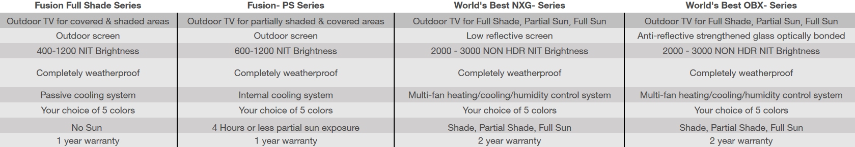 If you can spend a few extra dollars, upgrade to The World's Best Outdoor TV models. You, your family, and friends will be bragging about your Outdoor TV for years.