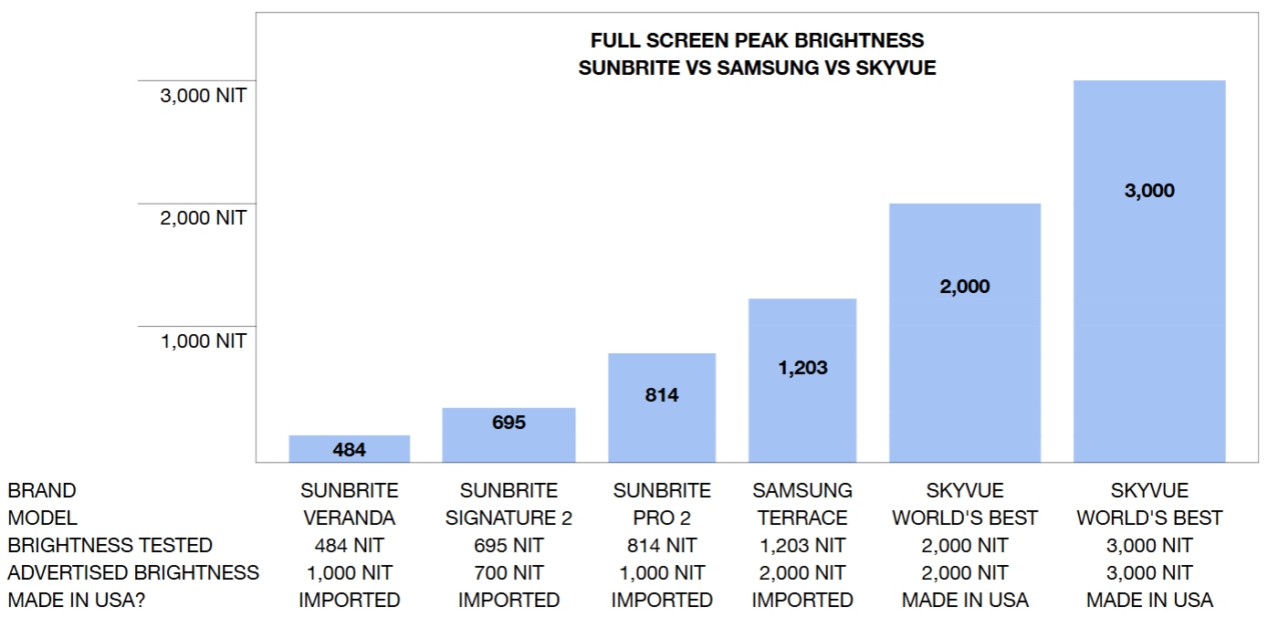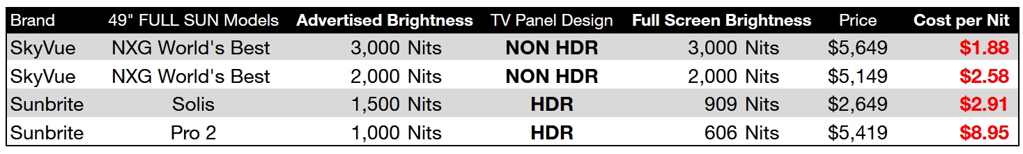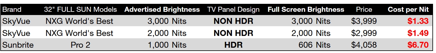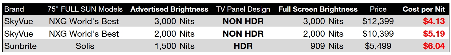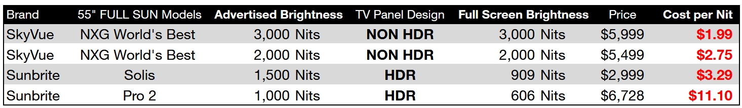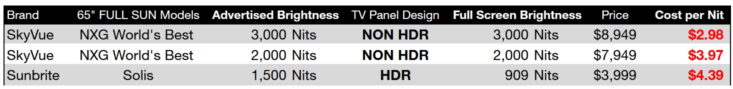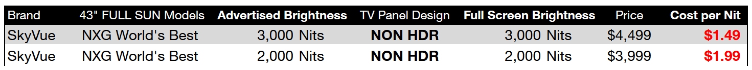 Since nit brightness is 10X more important to outdoor TV viewing than 4K or HDR, this recent change in how nit ratings are advertised is very important to understand before making a purchase.